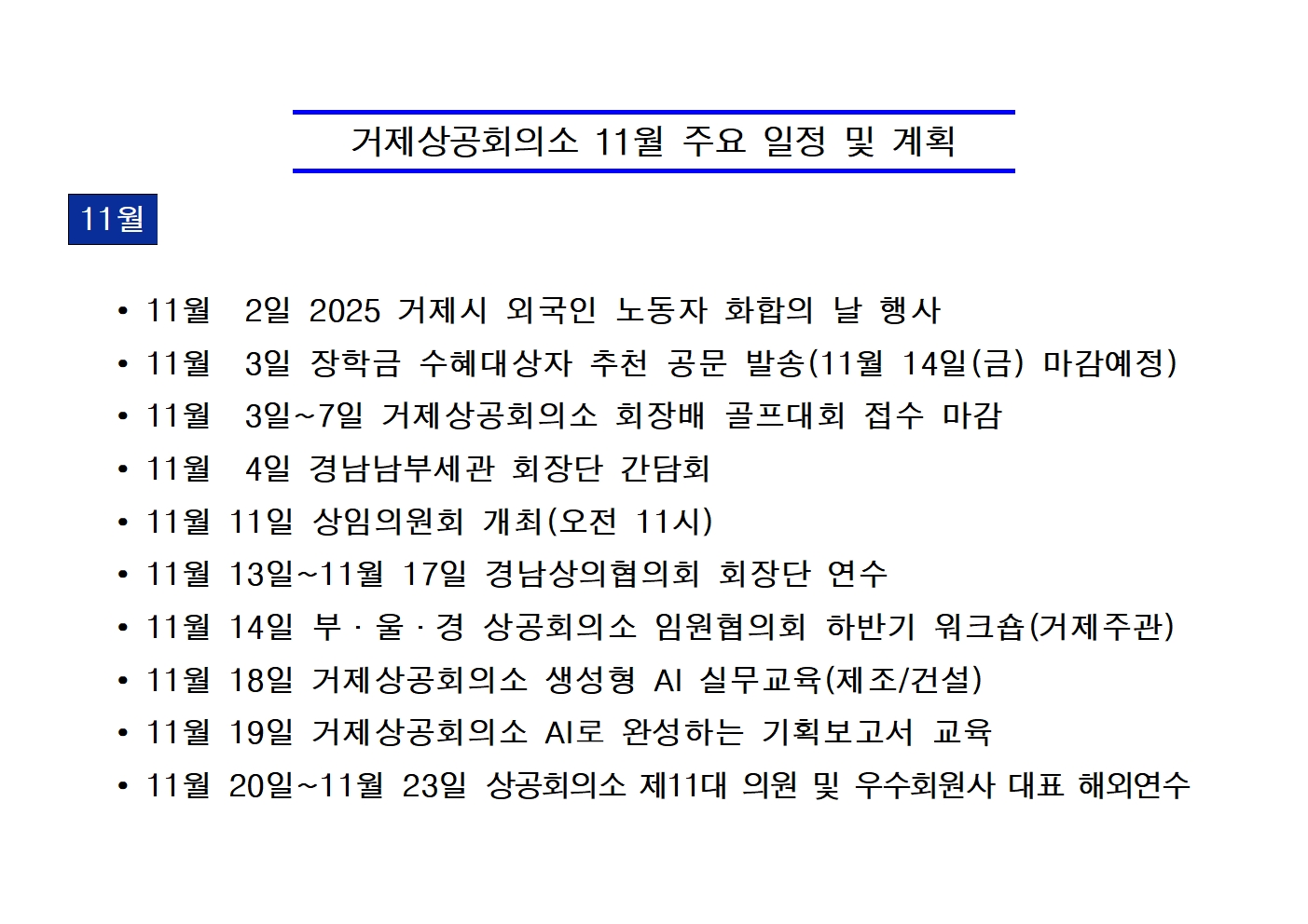 | ‒ | 2025년 11월 거제상공회의소 주요 일정 및 계획 안내 |