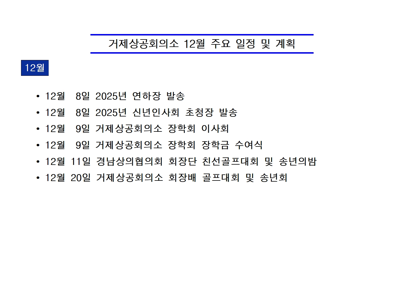 | ‒ | 2025년 12월 거제상공회의소 주요 일정 및 계획 안내 |