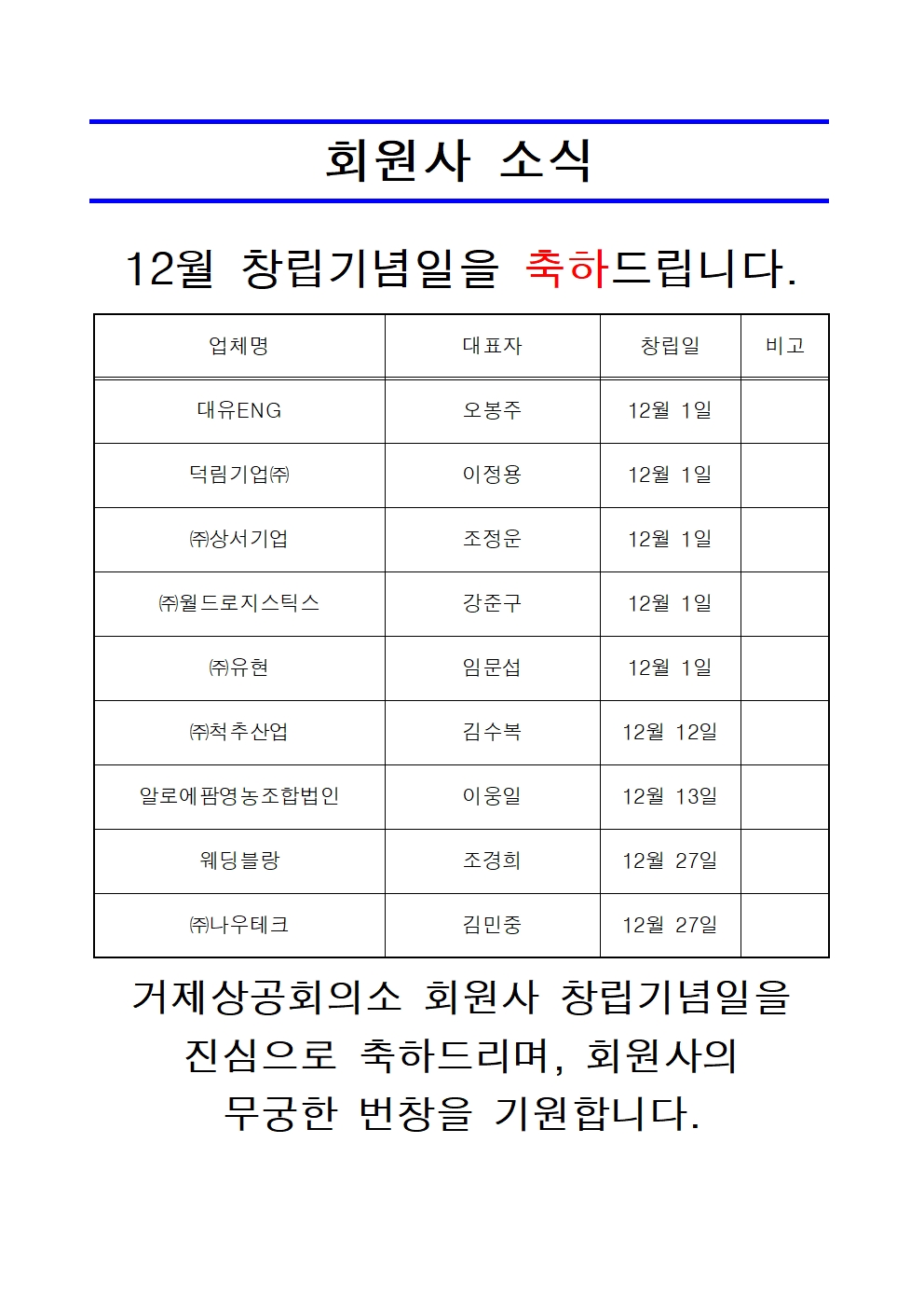 | 제목 | 2025년 12월 회원사 창립기념일 축하 | ||