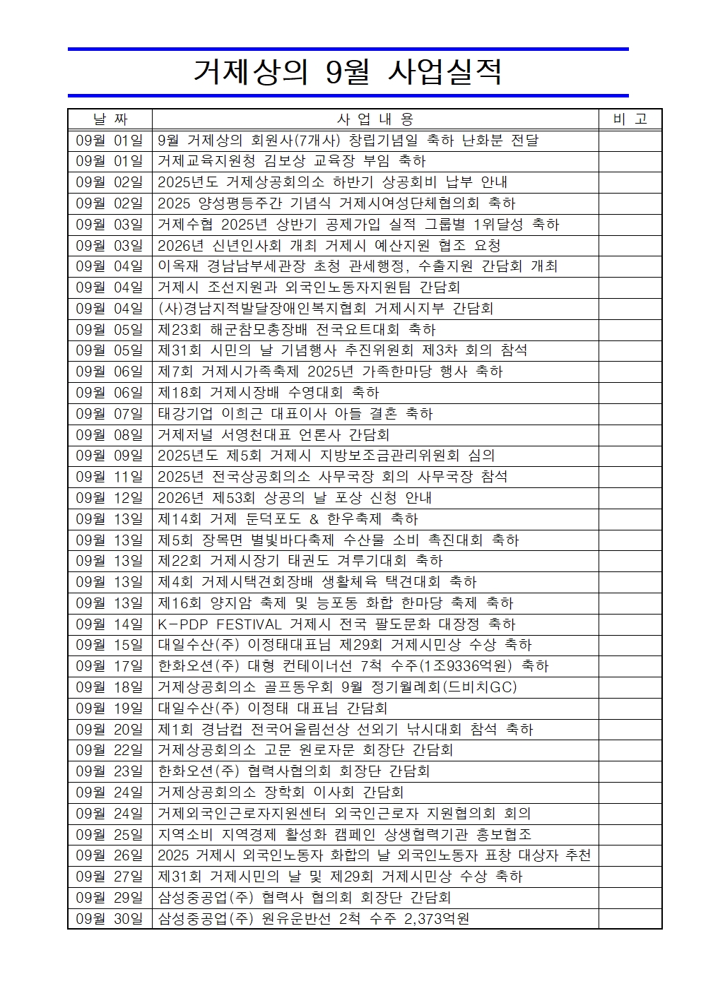 제목 | 2025년 9월 거제상공회의소 사업실적 | ||