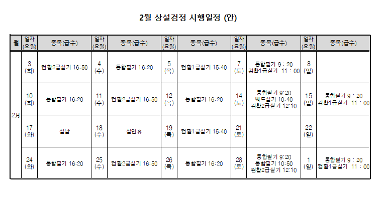| 제목 | 2026년 2월 상시시험 일정 안내 | ||