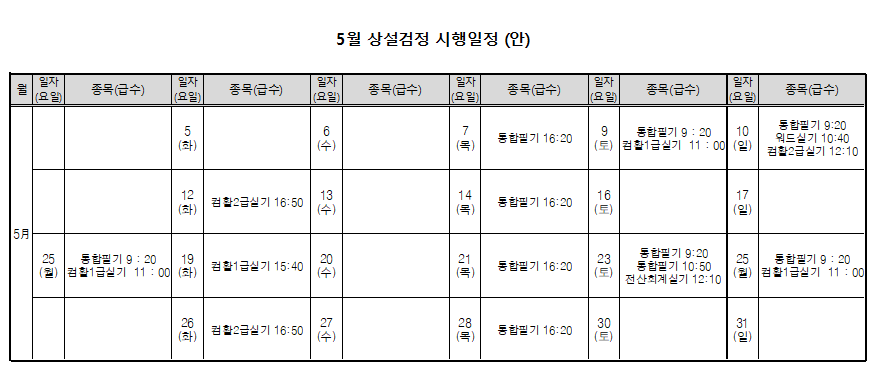| 제목 | 2026년 5월 상시시험 일정 안내 | ||